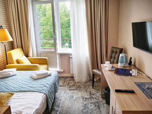 Фактический интерьер у номеров внутри категории может отличаться от представленного на фотографиях.Сервис: Уборка номера ежедневно, смена белья - раз в 3 дня, смена полотенец - раз в 3 дня