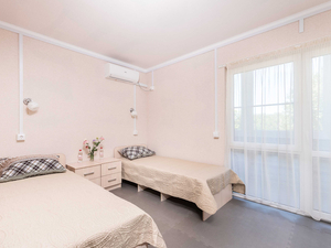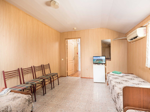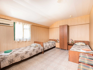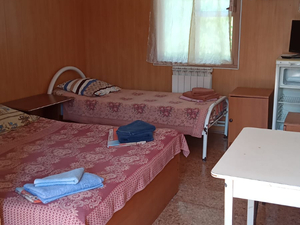 Сервис: Уборка номера раз в 3 дня, смена полотенец: раз в 5 дней или по требованию. смена постельного белья: раз в 5 дней или по требованию.2-местный номер (макс. 2+1 чел., 16 кв. м, телевизор, кондиционер, душ, холодильник, 1-спальные кровати, зеркало, раковина, туалет, номер расположен на 2 этаже). Доп. место - еврораскладушка, может быть установлена без ограничения по возрасту.2-местный улучшенный с балконом (новый корпус) (макс. 2 чел., 16 кв. м, телевизор, душ, фен, 1-спальные/ 2-спальная кровать, прикроватные тумбочки, шкаф, стол, раковина, мини-холодильник, стулья, туалет, полотенца, гости нового корпуса могут пользоваться зоной отдыха со столиками, бильярдом и настольным теннисом).3-местный номер (макс. 3+1 чел., 28 кв. м, телевизор, кондиционер, душ, холодильник, 1-спальные кровати, прикроватная тумбочка, шкаф, зеркало, стол, раковина, стулья, туалет, полотенца, расположен на 1 и 2 этаже; напольное покрытие - линолеум). Доп. место - еврораскладушка, может быть установлена без ограничения по возрасту.3-местный комфорт (макс. 3 чел., 25 кв. м, телевизор, кондиционер, душ, холодильник, прикроватная тумбочка, шкаф, зеркало, стол, раковина, стулья, туалет, полотенца, 2-спальная и 1-спальная кровать, номера расположены на 2 этаже; напольное покрытие - линолеум).