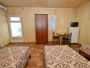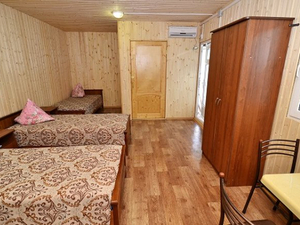 4-местный 2-комнатный 2 этаж (макс. 4+1 чел., 30 кв. м, телевизор, кондиционер, душ, холодильник, стул, шкаф, стол, туалет, в качестве основных мест одна 2-спальная кровать и две 1-спальные кровати). Доп. место - еврораскладушка, может быть установлена без ограничения по возрасту.