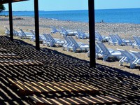 Услуги на пляже: зонтики. Платно: лежаки