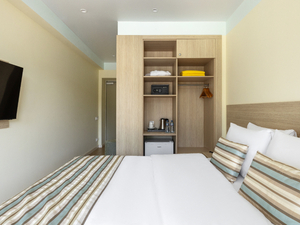 2-местный стандарт без балкона (макс. 2 чел., 14 кв. м, телевизор, кондиционер, душ, фен, халаты, тапочки, электрочайник, сейф, мини-холодильник, туалет, 2 кровати-трансформер в сдвинутом/раздвинутом состоянии.).2-местный стандарт с балконом (макс. 2 чел., 14 кв. м, телевизор, кондиционер, душ, фен, халаты, тапочки, балкон, электрочайник, сейф, мини-холодильник, туалет, 2 кровати-трансформер в сдвинутом/раздвинутом состоянии.).2-местный стандарт с террасой (макс. 2 чел., 14 кв. м, телевизор, кондиционер, душ, фен, халаты, тапочки, терраса, электрочайник, сейф, мини-холодильник, туалет, 2 кровати-трансформер в сдвинутом/раздвинутом состоянии.).2-местный джуниор сьют с балконом (макс. 2+2 чел., 25 кв. м, телевизор, кондиционер, душ, фен, халаты, тапочки, балкон, электрочайник, сейф, мини-холодильник, туалет, 2 кровати-трансформер в сдвинутом/раздвинутом состоянии.). Доп. место - кресло-кровать.2-местный джуниор сьют с террасой (макс. 2+2 чел., 26 кв. м, телевизор, кондиционер, душ, фен, халаты, тапочки, терраса, электрочайник, сейф, мини-холодильник, туалет, 2 кровати-трансформер в сдвинутом/раздвинутом состоянии.). Доп. место - диван-кровать.2-местный 2-комнатный фэмили сьют с балконом (макс. 2+3 чел., 29 кв. м, телевизор, кондиционер, душ, фен, халаты, тапочки, балкон, сейф, мини-холодильник, туалет, 2 кровати-трансформер в сдвинутом/раздвинутом состоянии.). Доп. место - раскладной диван + еврораскладушка.2-местный 2-комнатный сьют с террасой (макс. 2+3 чел., 43 кв. м, телевизор, кондиционер, душ, фен, халаты, тапочки, терраса, электрочайник, сейф, мини-холодильник, 2 кровати-трансформер в сдвинутом/раздвинутом состоянии.). Доп. место - раскладной диван + еврораскладушка.2-местный 2-комнатный апартамент с террасой (макс. 2+3 чел., 38 кв. м, телевизор, кондиционер, душ, фен, халаты, тапочки, электрочайник, сейф, мини-холодильник, мини-кухня, набор посуды, туалет, 2 кровати-трансформер в сдвинутом/раздвинутом состоянии.). Доп. место - раскладной диван + еврораскладушка. - Пляж