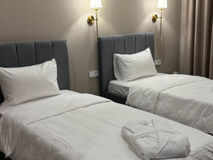 2-местный апартамент (макс. 2+1 чел., 35 кв. м, телевизор, кондиционер, фен, халаты, туалетные принадлежности, 2-спальная кровать, диван, стол, спальня, санузел, полотенца, оборудованная мини-кухня (электроплита, микроволновая печь, чайник, холодильник, посуда), имеется дверь между кухней и спальней, номер с отдельным входом и общей открытой террасой). Доп. место - раскладной диван.2-местный 2-комнатный люкс (макс. 2+3 чел., 50 кв. м, телевизор, кондиционер, фен, халаты, холодильник, туалетные принадлежности, балкон (в части номеров), мини-бар, 2-спальная кровать, санузел, полотенца, раскладной диван). 2-спальный раскладной диван и еврораскладушка.2-местный стандарт (макс. 2+1 чел., 24 кв. м, телевизор, кондиционер, фен, халаты, холодильник, туалетные принадлежности, мини-бар, 2-спальная кровать, санузел, полотенца). Доп. место - еврораскладушка.2-местный стандарт с балконом (макс. 2+1 чел., 24 кв. м, телевизор, кондиционер, фен, халаты, холодильник, туалетные принадлежности, балкон, мини-бар, 1-спальные/ 2-спальная кровать, санузел, полотенца, 4 номера из 27 с двумя раздельными кроватями). Доп. место - еврораскладушка. - Пляж