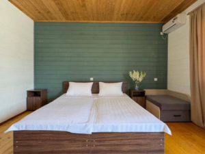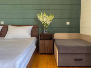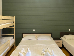 3-местный 1-комнатный семейный (макс. 3+2 чел., 26 кв. м, Wi-Fi, телевизор, кондиционер, душ, фен, 2-спальная кровать, 1-спальная кровать, прикроватные тумбочки, шкаф, зеркало, мини-холодильник, туалет, общая терраса). Доп. место - 2-ярусная кровать, возможно размещение детей до 12 лет.