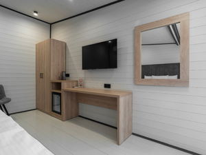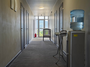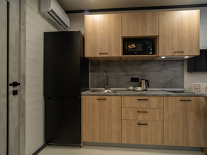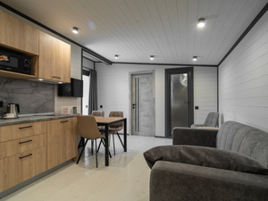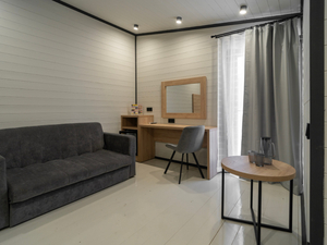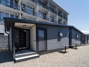 Размещение: Один 4-этажный корпус без лифта и 11 отдельно стоящих мини-коттеджей из дерева.