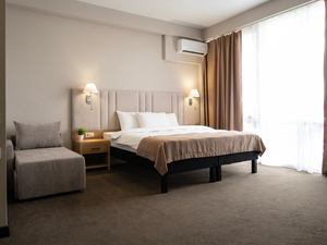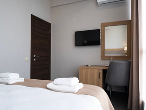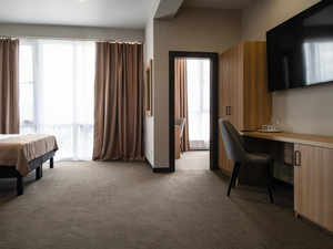 Сервис: Уборка номера ежедневно, смена белья - раз в 4 дня, смена полотенец - раз в 4 дня2-местный стандарт с балконом (макс. 2+1 чел., 22-24 кв. м, телевизор, сплит-система, душ, фен, туалетные принадлежности, сейф, 1-спальные/ 2-спальная кровать, мини-холодильник, туалет, чайный набор). Доп. место - еврораскладушка.2-местный 2-комнатный стандарт с балконом (макс. 2+3 чел., 45 кв. м, телевизор, сплит-система, душ, фен, тапочки, туалетные принадлежности, сейф, 2-спальная кровать, мини-холодильник, туалет, чайный набор). Доп. место - еврораскладушка, и 2-спальный диван.2-местное шале (макс. 2+2 чел., 28 кв. м, телевизор, сплит-система, душ, фен, туалетные принадлежности, сейф, 2-спальная кровать, мини-холодильник, туалет, чайный набор). Доп. место - раскладной 2-спальный диван.2-местное 2-комнатное шале (макс. 2+2 чел., 50 кв. м, телевизор, сплит-система, душ, фен, туалетные принадлежности, сейф, 2-спальная кровать, мини-холодильник, туалет, чайный набор). Доп. место - раскладной 2-спальный диван.
