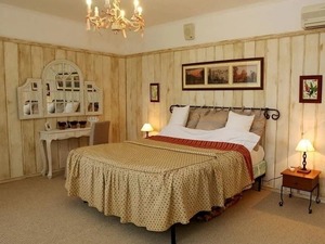 При гостинице работает ресторан - зал с открытым живым камином, стеллажи с книгами, кованые светильники ручной работы. Гостям предложен большой выбор блюд, так как у нас интернациональная кухня и большой выбор напитков. В хорошую погоду позавтракать, пообедать и поужинать можно на открытой веранде под навесом.