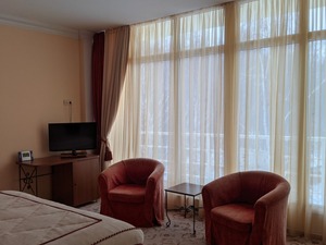 Гостиница предлагает высокий уровень сервиса и отличные условия проживания. К услугам гостей комфортабельные номера различных категорий - "Эконом", "Люкс" и "Студия". Номера оснащены всем необходимым, в том числе широкими кроватями, системой кондиционирования воздуха, мягкой мебелью, холодильником, телевизором, сейфом, телефоном, беспроводным доступом в Интернет (Wi-Fi). В ванных комнатах установлены душевые кабины, биде, предоставляются фен, туалетные принадлежности, халат, тапочки. В отдельных номерах есть полностью оборудованная кухня.