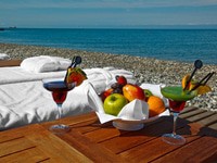 Услуги на пляже: 2 душ (душевые кабины; душевые кабины), 2 комнаты для переодевания, 2 спасательная служба. Бесплатно: 2 зонтики, 2 лежаки, 2 пляжные полотенца, 2 шезлонги