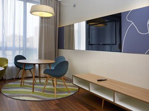Для поддержания спортивной формы есть фитнес-зал и бассейн, а для расслабления — сауна или бар, в котором можно посидеть за коктейлем с друзьями. Удобно расположившись в открытом лобби, гости могут поработать, перекусить или просто с комфортом посмотреть телевизор.