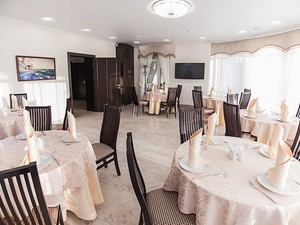 На территории гостиницы работает круглосуточный ресторан «Регата» с большими панорамными окнами и видом на проспект Нариманова.
