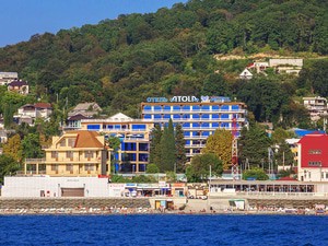 Современный комфортабельный корпус "Атола" лечебно-оздоровительного комплекса «Горный Воздух» в Лазаревском районе Большого Сочи принимает гостей с марта по октябрь. Расположен в 2,5 километрах от основной территории. До общекурортного галечного пляжа от корпуса "Атола" лечебно-оздоровительного комплекса «Горный Воздух» в пос. Лоо Большого Сочи 600 метров.