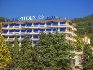 На территории корпуса "Атола" в пос. Лоо город Сочи находится открытый бассейн, бар, кафе-столовая (где отдыхающие получают трехразовое питание), лобби-бар, пиццерия, салон красоты. В высокий сезон проводятся анимационные программы.
