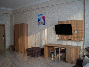 Сервис: Уборка номера ежедневно, смена белья - раз в 4 дня, смена полотенец - раз в 4 дня2-местный стандарт без балкона (макс. 2+2 чел., 22-23 кв. м, телевизор, кондиционер, ванна, умывальник, фен, 1-спальные/ 2-спальная кровать, сушилка раскладная (для белья), мини-холодильник, туалет, номера расположены на втором этаже на стороне моря, над крыльцом). Доп. место - еврораскладушка/кресло-кровать, могут быть установлены без ограничения по возрасту.2-местный стандарт с балконом (вид на горы) (макс. 2+2 чел., 22-23 кв. м, телевизор, кондиционер, ванна, умывальник, фен, балкон, 1-спальные/ 2-спальная кровать, сушилка раскладная (для белья), мини-холодильник, туалет). Доп. место - еврораскладушка/кресло-кровать, могут быть установлены без ограничения по возрасту.2-местный стандарт с балконом (вид на море) (макс. 2+2 чел., 22-23 кв. м, телевизор, кондиционер, ванна, умывальник, фен, балкон, 1-спальные/ 2-спальная кровать, сушилка раскладная (для белья), мини-холодильник, туалет). Доп. место - еврораскладушка/кресло-кровать, могут быть установлены без ограничения по возрасту.2-местный стандарт без балкона с панорамными окнами (макс. 2+4 чел., 28-30 кв. м, телевизор, кондиционер, ванна, умывальник, фен, мягкая мебель, 1-спальные/ 2-спальная кровать, сушилка раскладная (для белья), мини-холодильник, туалет, номера расположены в круглом сектора здания). Доп. место - раскладной диван + еврораскладушка, могут быть установлены без ограничения по возрасту.