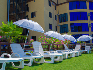 - Бесплатно: зонты от солнца у бассейна, крытый бассейн (с пресной водой, на Осн. территории; функционирует до начала пляжного сезона), открытый бассейн (с пресной водой, неподогреваемый, функционирует в высокий сезон по усмотрению администрации), открытый бассейн с горками (на Осн. территории), шезлонги у бассейна