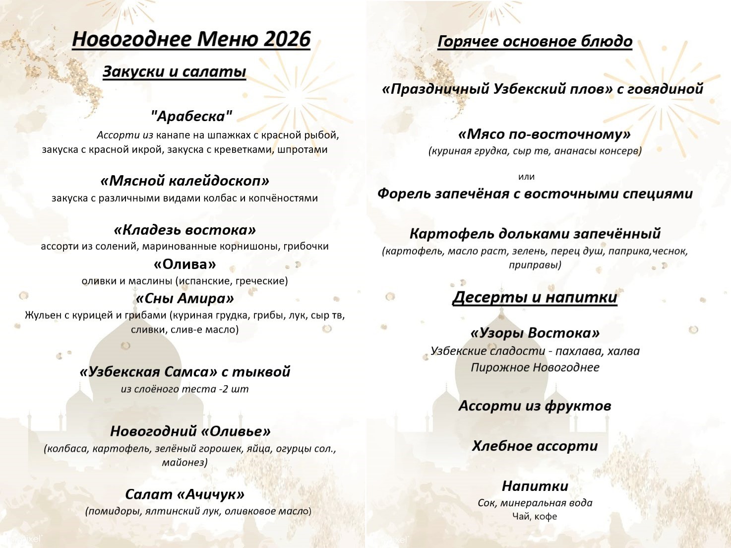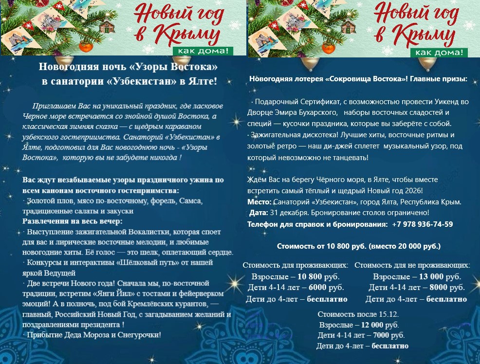 Цены на проживание в Санаторий "Узбекистан" зависят от даты поездки, количества гостей, выбранного тарифа.