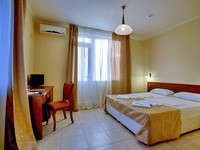 Сервис: Уборка номера ежедневно, смена белья - раз в 4 дня, смена полотенец - раз в 4 дня2-местный стандартный (макс. 2+1 чел., 18 кв. м, телевизор, кондиционер, душ, холодильник, балкон, 1-спальные кровати, туалет). Доп. место - еврораскладушка.2-местный 2-комнатный люкс (макс. 2+2 чел., 45 кв. м, телевизор, кондиционер, душ, халаты, тапочки, холодильник, 2-спальная кровать, туалет). Доп. место - диван.2-местный 2-комнатный коттедж люкс (макс. 2+3 чел., 50 кв. м, Wi-Fi, телевизор, сплит-система, душ, фен, халаты, тапочки, холодильник, веранда, мягкая мебель, 2-спальная кровать, чайник, санузел). Доп. место - раскладной диван + еврораскладушка.