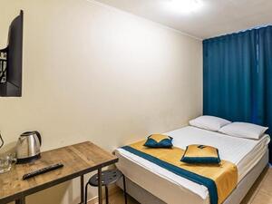 *Большой номерной фонд. 81 номер: номера категории «стандарт» с размещением 1, 2-х, 3-х гостей (размещение 1+1, 2, 2+1). Каждый номер оснащен удобствами (душем и туалетом), ТВ, холодильником, чайником, банными и постельными принадлежностями. Номера категории «delux» оснащены удобствами, ТВ, холодильником, чайником, банными и постельными принадлежностями, кроватью размером king size и дополнительными предметами интерьера.