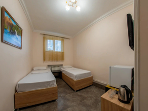 2-местный эконом (макс. 2 чел., 11 кв. м, ЖК/LCD телевизор, сплит-система, фен, тапочки, холодильник, электрочайник, 2-спальная кровать, душевая кабина, санузел).
