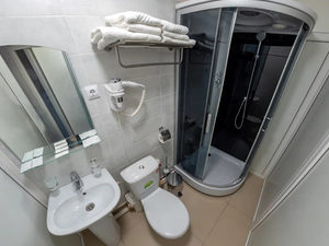 1-местный эконом (макс. 1 чел., 9 кв. м, ЖК/LCD телевизор, сплит-система, фен, тапочки, холодильник, электрочайник, 1-спальная кровать, душевая кабина, санузел, Внимание! В номере нет окна).