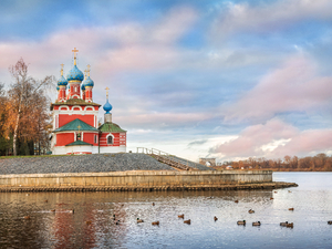 Старинный Калязин - городок на правом, высоком берегу Волги. Его удивительной достопримечательностью является колокольня Никольского собора, чудом уцелевшая при создании Угличского водохранилища для одноименной ГЭС в 1940 году. Она осталась единственным напоминанием о бывшем здесь до этого старинном Николо-Жабенском монастыре и Никольском соборе. И теперь целомудренно и строго возвышается над водной гладью, частично скрытая ниже уровня воды. Зрелище незабываемое и волнующее.