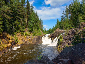2-й день: Петрозаводск – водопады Ахвенкоски – горный парк «Рускеала» – поездка на ретропоезде (по желанию) – Сортавала