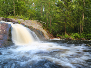 Следующая остановка – водопады Ахинкоски (Рускеальские). Осмотрим место, где снимался легендарный советский фильм «А зори здесь тихие…» и сделаем фото. За доп. плату (500 руб./взрослый, 400 руб./дети, студенты, пенсионеры) можно прогуляться по эко-тропе с навесными мостиками над водопадами.