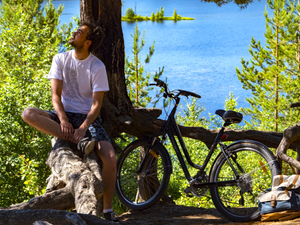 Преодолеем несложные рельефы, прокатимся по живописным лесным тропам соснового бора, посетим мыс «Кормуш», что славится своей природной энергетикой и увидим… уходящие в озёрную даль острова