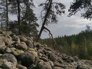 Непринужденная и весьма познавательная прогулка по карельскому лесу. Потрясающего вида сосновый бор, беломошники и холмистые рельефы. Прекрасные пейзажи. Осмотр стоянки одинокого монаха (н. ХХ в.); переход по гати - дороге, выложенной из бревен; осмотр первой ГЭС в Карелии, построенной на средства местных жителей (20-е годы ХХ века); осмотр оборонительных сооружений Великой отечественной войны (1941-44г.г.). Выход к плесу реки Ухта. Походный плотный перекус.